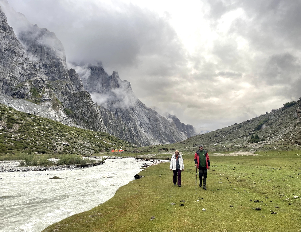 Trek from Mingulo Broq to Nangma Valley, passing through stunning granite walls, waterfalls, and alpine meadows. Set up camp in the valley for the night.